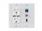 2-Gang wall plate featuring 2 Power Outlets (15A), Dual 2.1A USB Charger Ports, LED lighting, 1 HDMI HDTV port, 1 CAT6 RJ45 Ethernet port, and Coaxial Cable TV F-Type keystone jack.