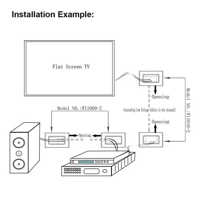 Recessed cable wall plate for wires & cables in wall The cable management kit is a low voltage wall plate designed to hide wires in the wall behind a flat TV or other media applications.