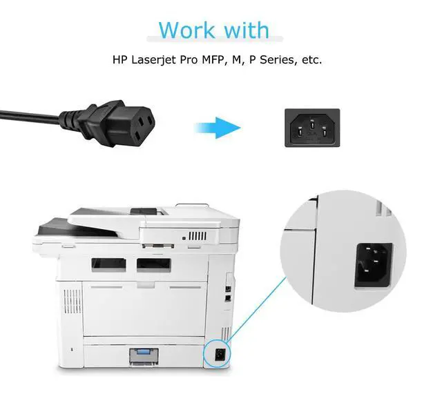 Compatible with various LaserJet Pro MFP and P Series devices that accommodate a 3-Pin Power Connector.