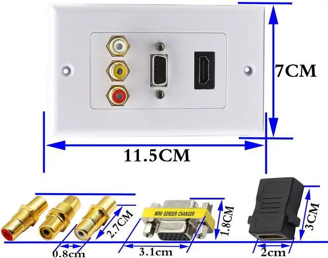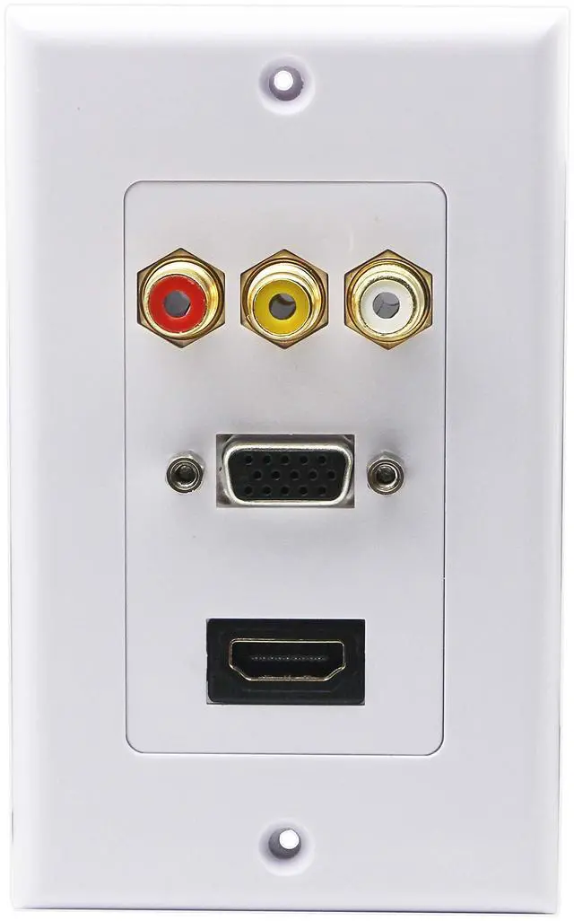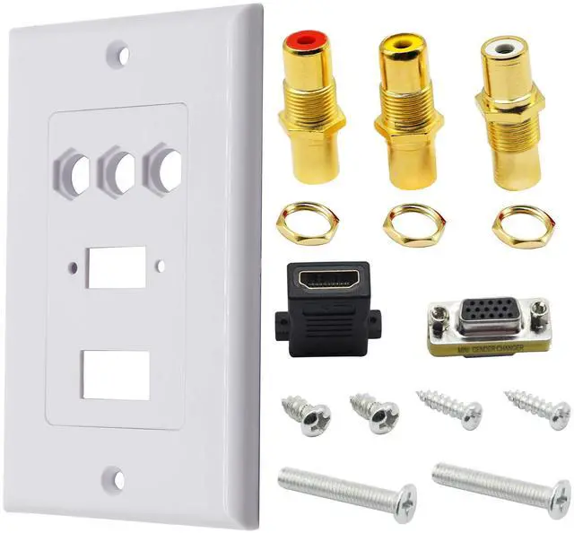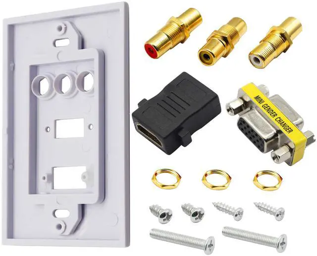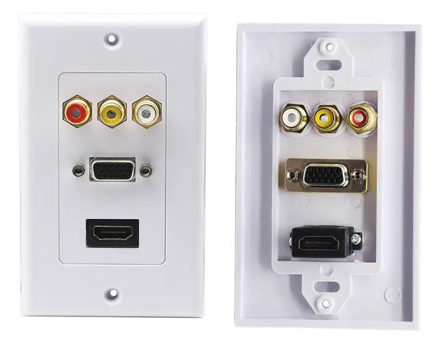 No soldering required: HDMI, 3 RCA, and VGA Coupler Style Connectors provide easy connections to the front and back of the wall plate. Easy to install, making your cables tidy.