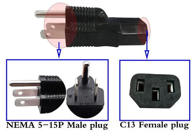 • Features: 3 prong C13 to NEMA 5-15P Plug Power Adapter