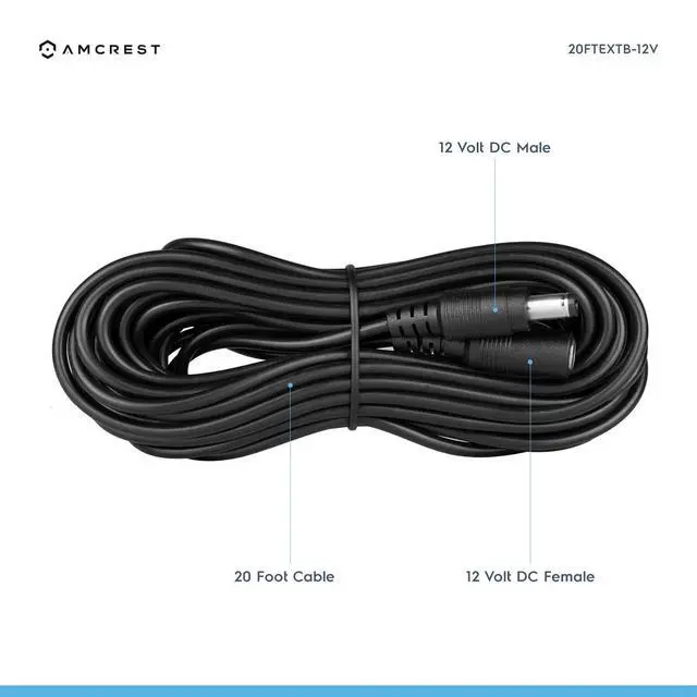 Universal 12V DC Power Extension Cable (20ft) for Power Supply/Adapter/Outdoor Security Cameras, 5.5mm DC Plug, 20 Feet, Black (20FTEXTB-12V)