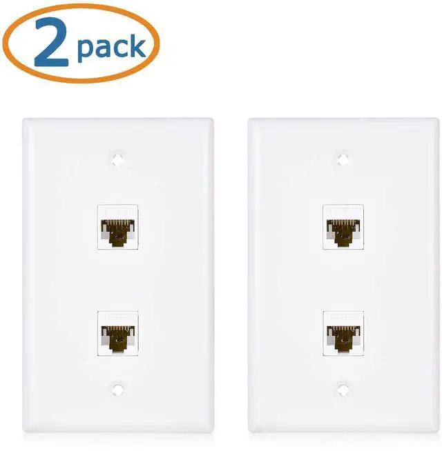 This cost-effective pack includes 2 Cat6 wall jacks with two integrated Ethernet outlets, allowing you to connect two Cat6 Ethernet cables on either side of the wall plate. It's simple to plug and play with no wire terminations needed.