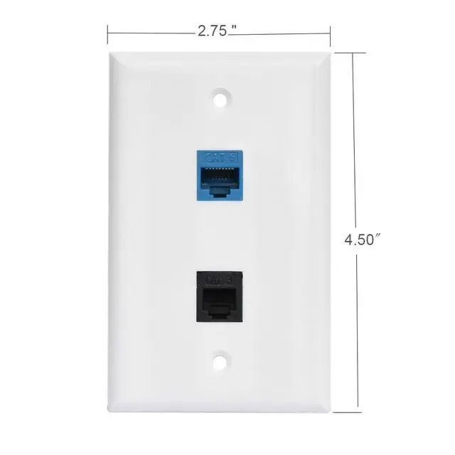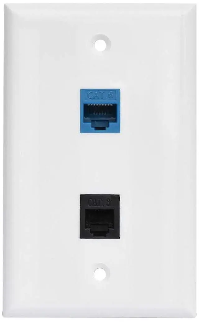 Wall Plate - Phone CAT6 Ethernet Wall Plate Female to Female - 1 6P4C CAT3 RJ11/RJ12 Jack + 1 Cat6 Ethernet Port - White