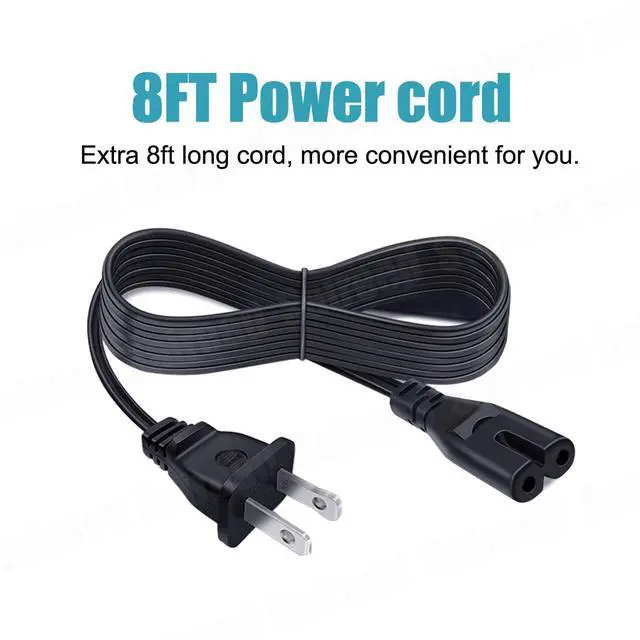 8ft long AC TV power cable cord replacement suitable for multiple sizes of LCD HD Smart 4K Curved TVs.
