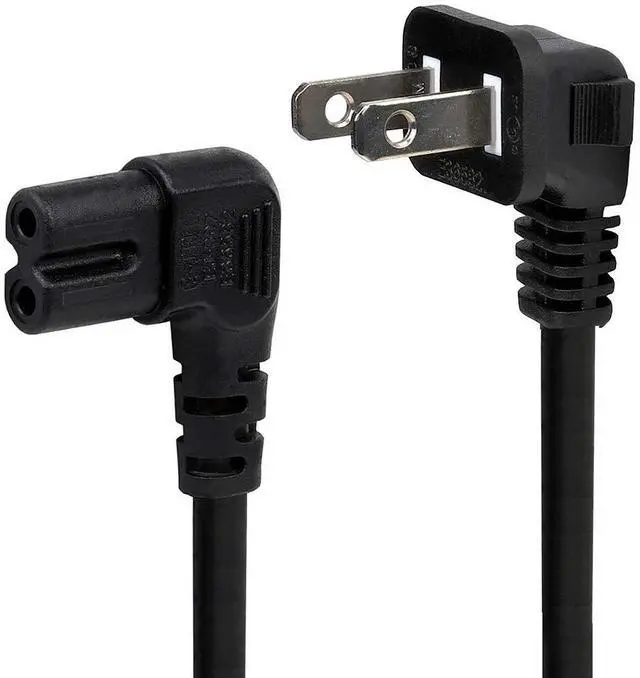 10FT 2 Prong Power Cord, NEMA 1-15P to IEC320 C7 Right Angle Power Cable, Replacement for TV, Power Cords for TV