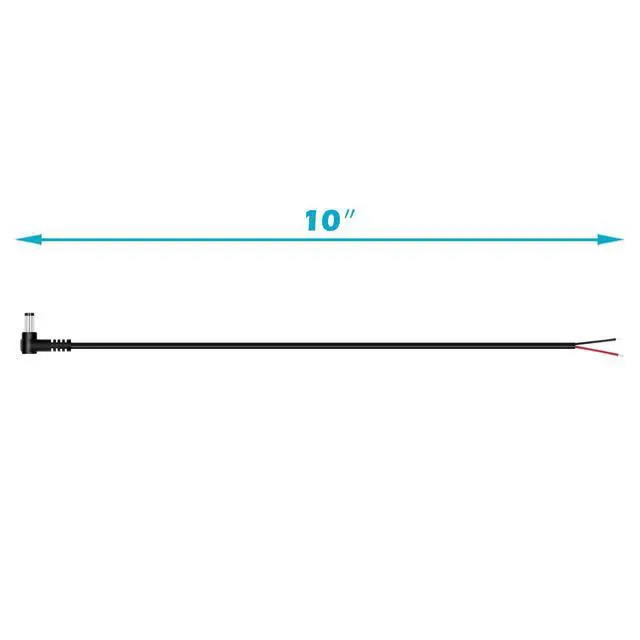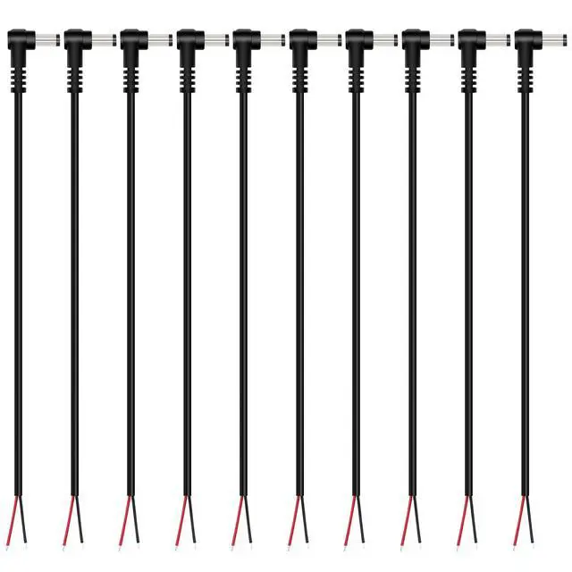 • Package contents: 10-Pack 5.5mm x 2.1mm 90 degree right angle DC power plug to bare wire open end pigtail repair power cable cord.