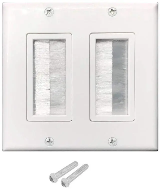 TYPE: 2-Gang Brush Wall Plate, can organize and conceal low voltage cables when passing through the wall, preventing damage and dust from entering. This will keep your outlet clean and neat.