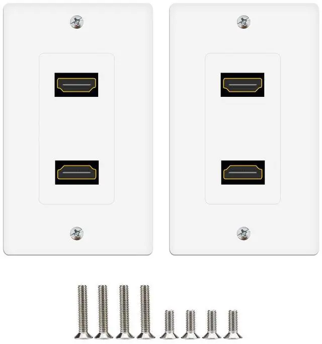 Two-Piece 4K HDMI Wall Outlet - Included faceplate and HDMI insert makes connecting the cables easier; Simple installation of HDMI wall plate 1 port insert with the included mounting screws.