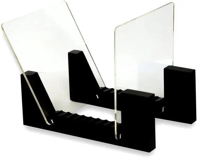 Premium Quality: Made of stylish solid black wood combined with transparent crystal-clear acrylic glass. This LP storage rack can hold 25 albums in a row easily and efficiently. Use it in your home, office, or on desktop tables as a decorative piece that enhances your turntable and music area.