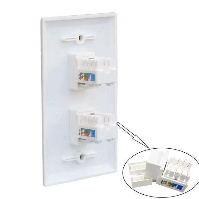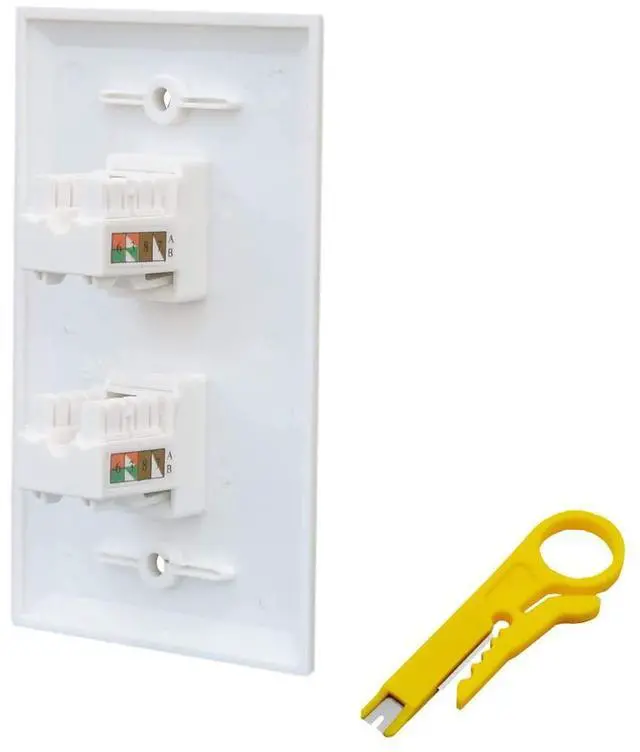 Punch Down Wall Plate 2 Port with Tool - Single Gang Cat6 RJ45 Keystone Punchdown Jack Cover Plate/Faceplate - White