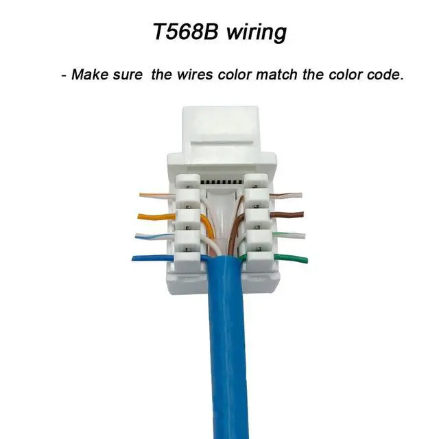 • RJ45 keystone punch down jack, female to wire, ideal for in-wall installation in network projects.