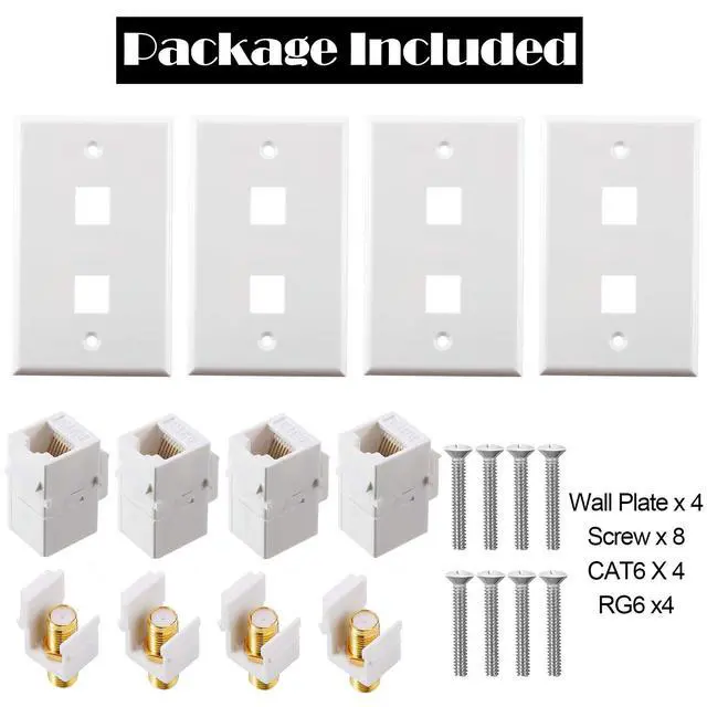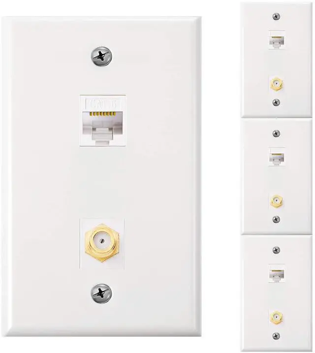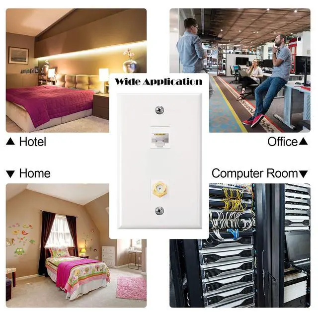 Use for: this wall plate has 1 cat6 ethernet port and 1 coax F-type port, suitable for satellite, ethernet, and TV coax cable connection.