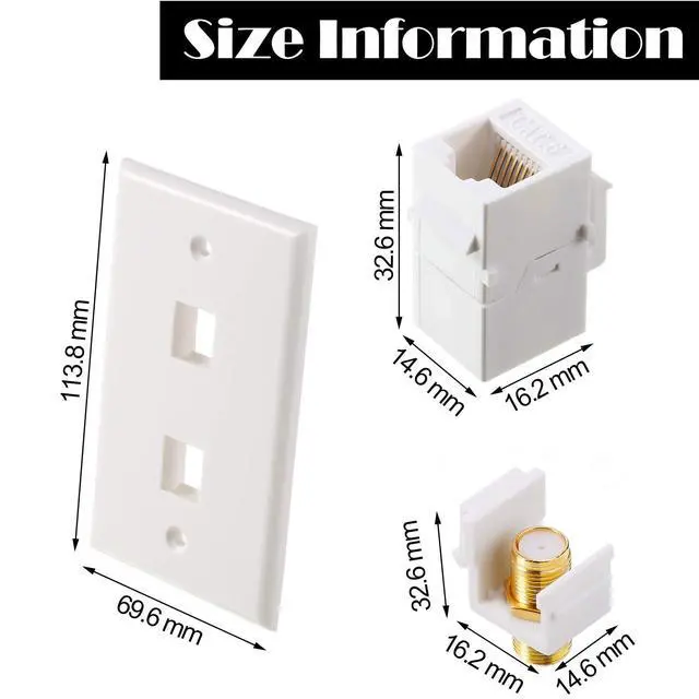 Widely application: the wall plate works with CAT5, CAT5e, CAT6, or CAT7 cables. Due to its standard size of 2.7"W x 4.5"H, it can be mounted with a single-gang low voltage bracket or applied with other wall plates, patch panels, etc.
