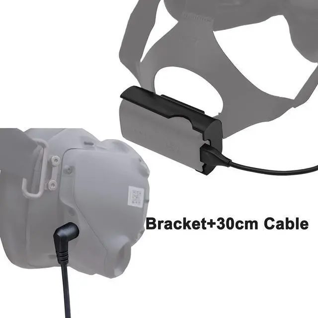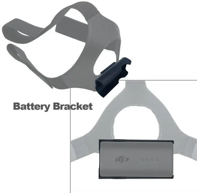 The bracket is compatible with DJI FPV Goggles V2 battery, securely holding the battery in place and attaching it to the headband of the goggles.