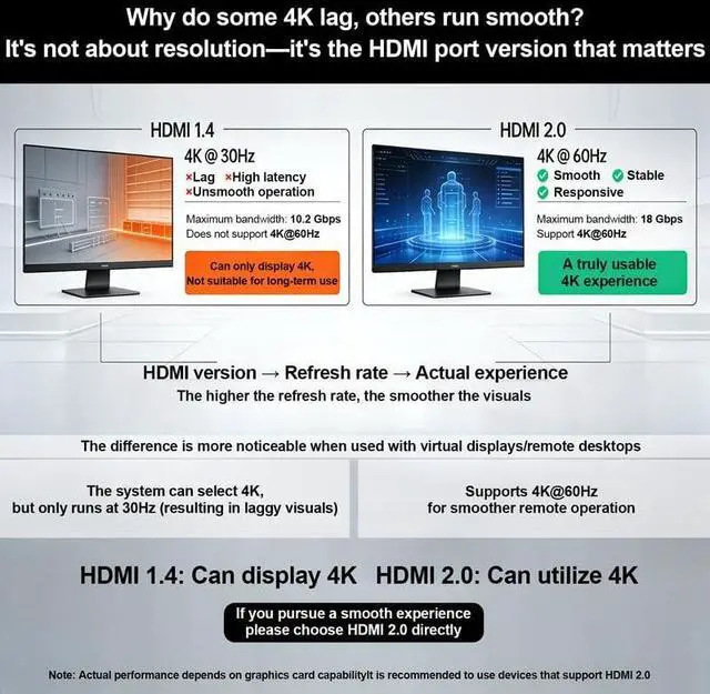 ?? 4K UHD EDID for Precise 3840×2160 60Hz Output + 1080P 120Hz Support Powered by a native 3840×2160 60Hz UHD EDID profile this emulator ensures flawless high-resolution output even in fully headless environments. Also supports 1920×1080 120Hz delivering smooth motion for gaming streaming and high-performance visualization workflows. Perfect for 4K media playback remote editing stations GPU workstations and cloud desktops.?? Advanced EDID Handshake Technology for Zero-Failure Headless Operation Maintains a persistent EDID handshake that keeps systems display-active without a monitor.