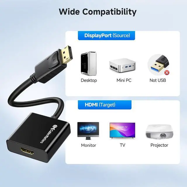 • Cable Matters Active DisplayPort to HDMI Adapter (Active DP to HDMI Adapter) Supporting Eyefinity Technology and 4K Resolution