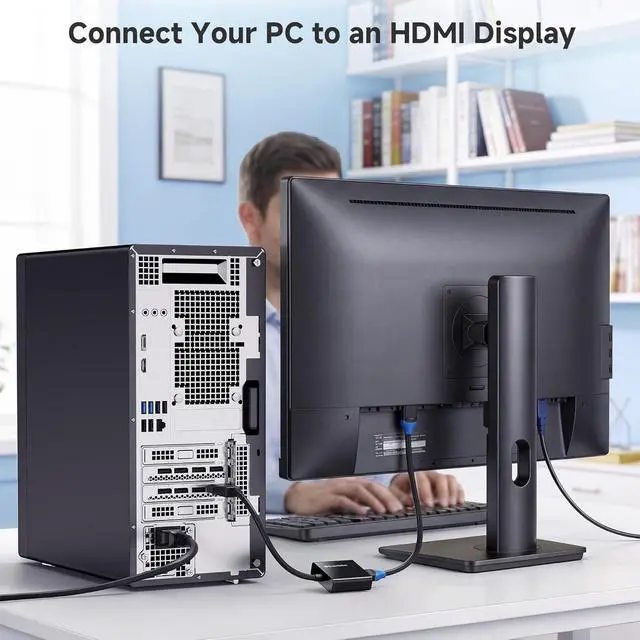 Portable DisplayPort to HDMI active adapter connects a DisplayPort (DP DP++ DisplayPort++) equipped laptop or desktop to an HDTV monitor or projector with HDMI input; An HDMI cable (sold separately) is required for this DP to HDMI adapterDisplay Port to HDMI adapter transmits high-definition audio and video from your computer to an HDTV for video streaming or gaming; Display to HDMI adapter connects and configures your monitor for an Extended Desktop or Mirrored DisplaysActive HDMI to DisplayPort adapter supports video resolutions up to 3840x2160 @ 60Hz (Ultra HD) and uncompressed digital 7.1 5.1 or 2 audio channels; Supports AMD Eyefinity Multi-Display TechnologyHDMI to Display Port adapter with gold-plated connectors resists corrosion provides durability and improves the signal transmissionHDMI to DP adapter connector with latches provides a secure connection with a release button that must be depressed before unplugging