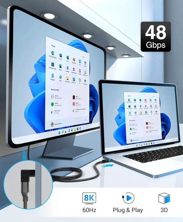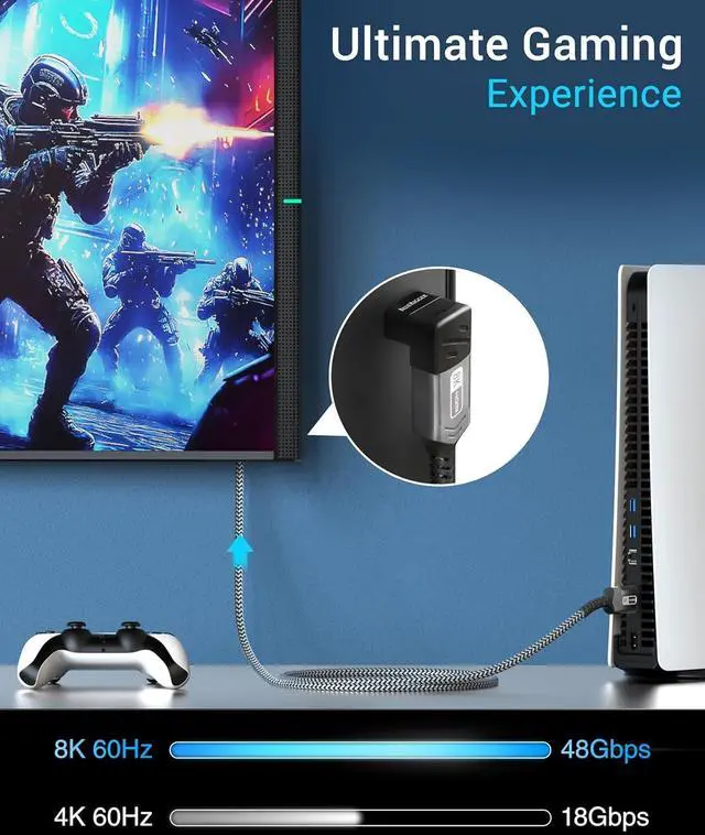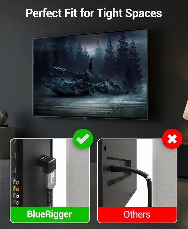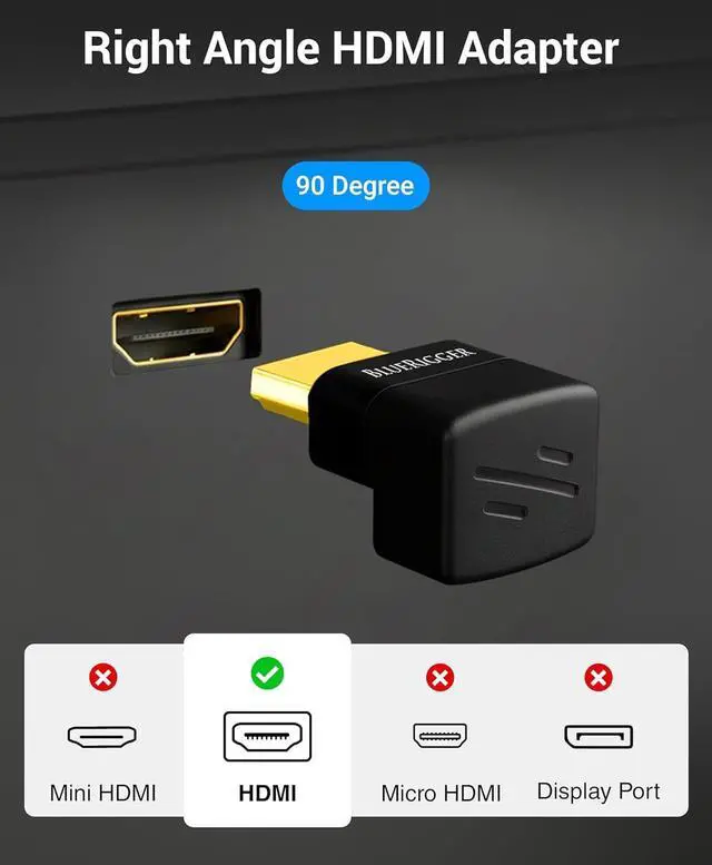 HDMI ADAPTER: BlueRigger 90 degree HDMI adapter supports resolution up to 8K 60Hz 4K 120Hz 2K 240Hz 48 Gbps ultra high speed transmission eARC HDR 10+ 3D HDCP 2.3 Dolby Vision HD Dolby 7.1 & Dolby Atmos. The bi-directional HDMI male to female adapter is perfect for gaming home theater office or conference room? 90D