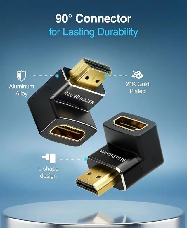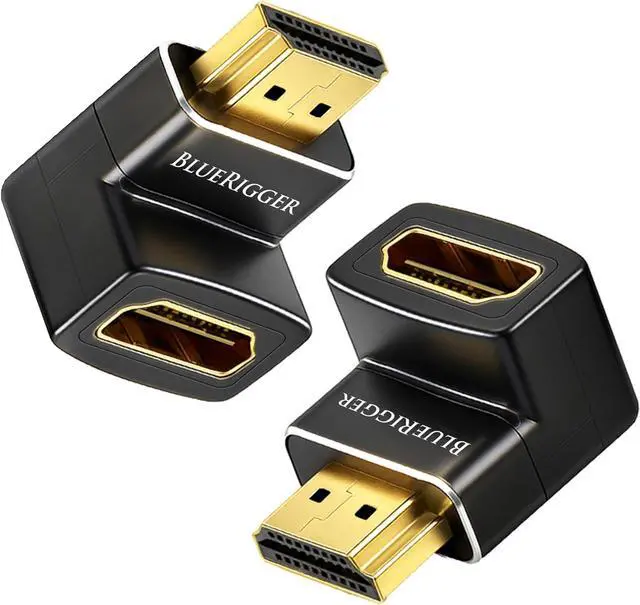 ELBOW CONNECTORS: BlueRigger 90 degree HDMI adapters offer a right and left angled L shaped design making them easy to plug in tight spaces or behind your HDTV. The HDMI elbow 90 degree adapter ensures a secure connection of HDMI cables without causing damage from bending?