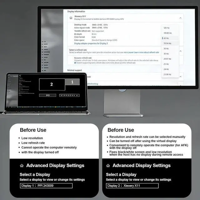 ?? Optimized 4K HDR EDID with Recommended 3840×2160 60Hz Engineered around a 4K HDR default profile of 3840×2160@60Hz ensuring highly accurate color brightness and tone-mapping behavior. Ideal for high-end GPUs rendering workflows and remote desktops needing stable UHD output.??