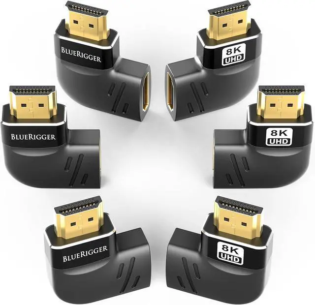 CONNECTORS: BlueRigger 90 degree & 270 degree HDMI adapters offer a right and left angled L shaped design making them easy to plug behind your HDTV or on the side of your laptop. The HDMI elbow 90 degree adapter ensures a secure connection of HDMI cables without causing damage from bending?