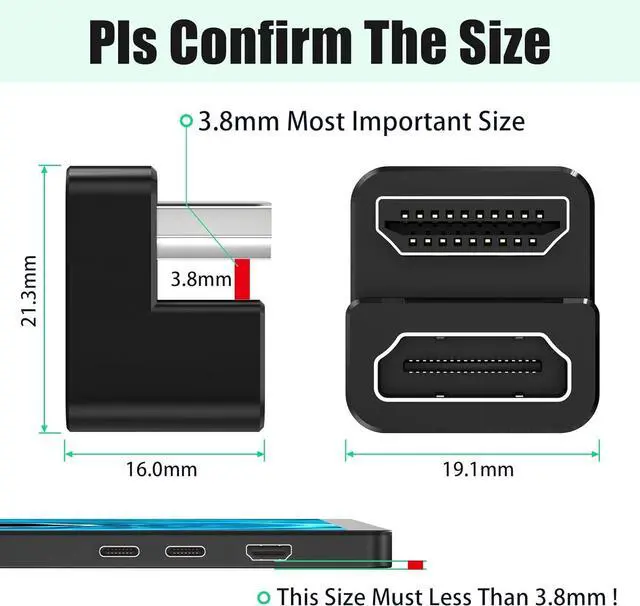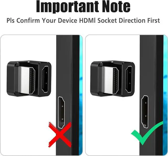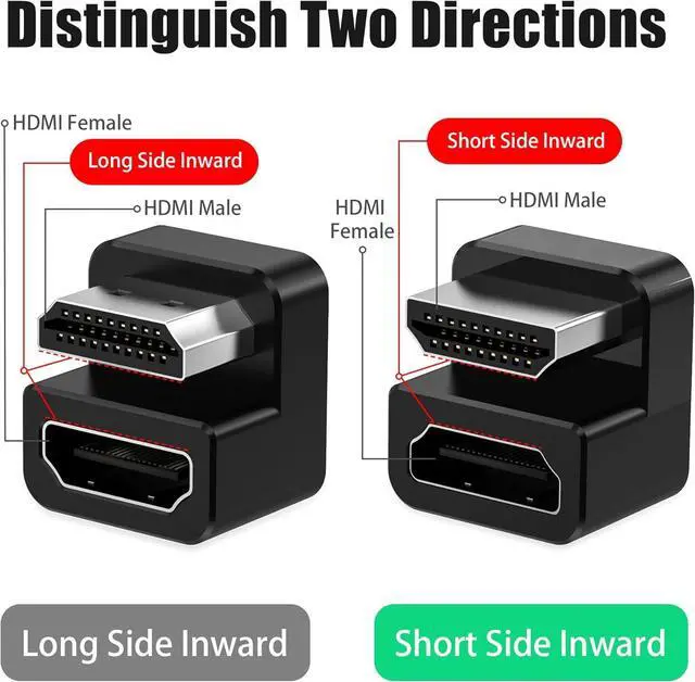 ? [180 Degree HDMI 2.1 Adapter] Flip back 180 degrees to hide the HDMI cable. Please confirm the HDMI socket direction of your device it's very important.? [Exquisite Workmanship] Strict quality inspection standards fine appearance details refuse to be shoddy. Manufacture in strict accordance with industry standards without cutting corners.? [Lossless Transmission] The 8K HDMI connector fully supports resolution up to 8K@60Hz with life-like color. It also features HDR10 HDCP 2.2 3D video Audio Return Channel 18Gbps high-speed transmission Audio Return Channel (ARC) Ethernet Channel and DTS-HD Master Audio.? [Knowledge That Only Experts Know] The contact shrapnel is made of high-elastic high-conductivity copper.