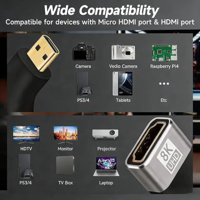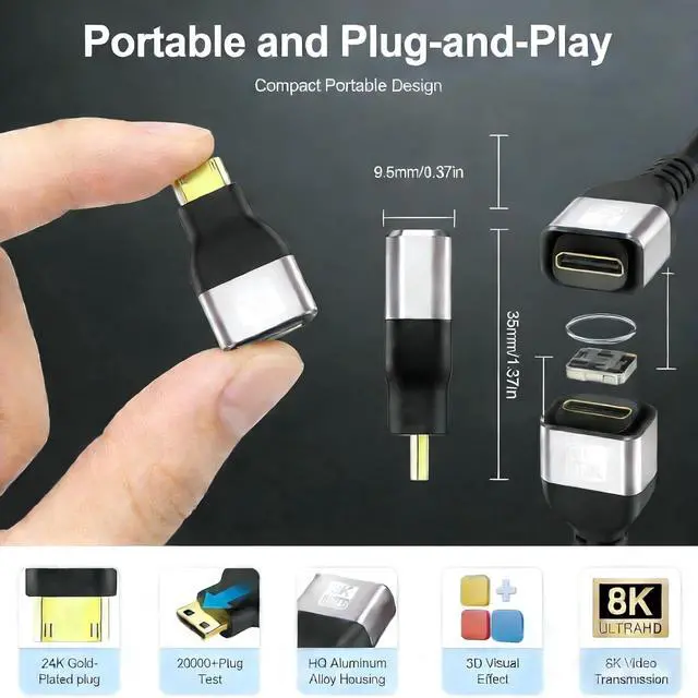 Added Value: Includes one 8K mini micro HDMI to HDMI adapter and one mini HDMI to HDMI adapter providing versatile connectivity solutions for all your devices2 years-free warranty service. If you have any questions about our product please feel free to contact with our reliable customer service We will process your request in the shortest possible time