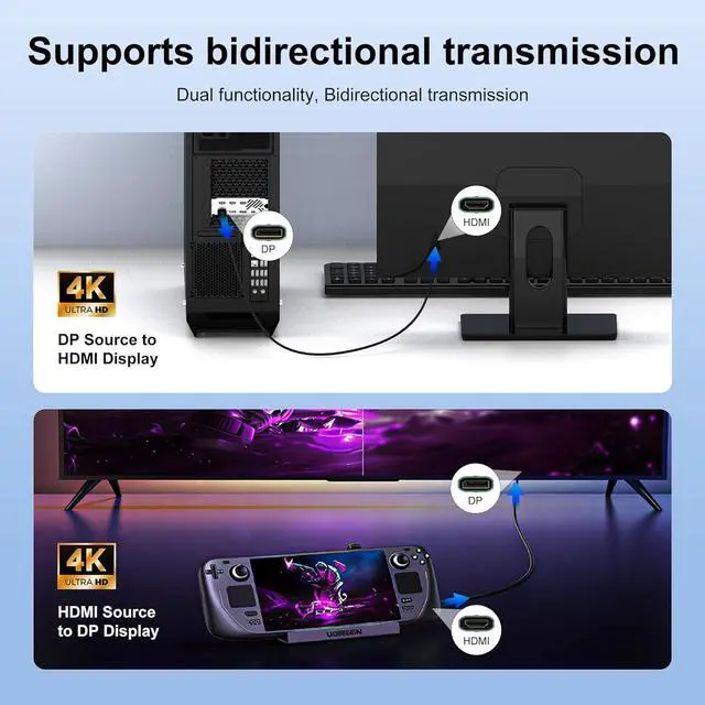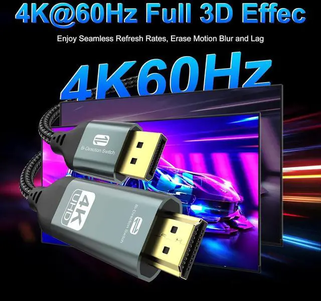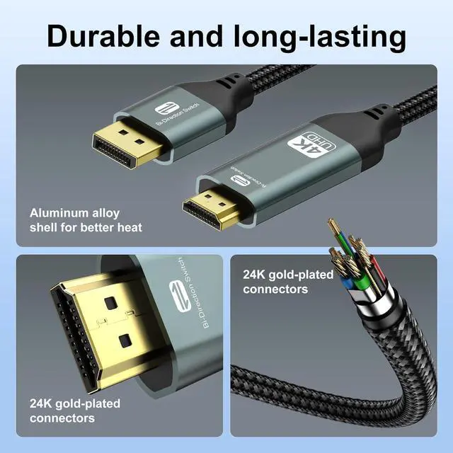 Bidirectional Cable DisplayPort to HDMI cable an absolute must-have for achieving extraordinary visual clarity in breathtaking 4K UHD resolution at smooth 30Hz backward compatibility with 1440P@60hz and 1080P@120hz ensuring compatibility across various DP devices and HDMI display resolutions. Ensures synchronized high-definition audio and video for an immersive streaming or gaming experienceWide
