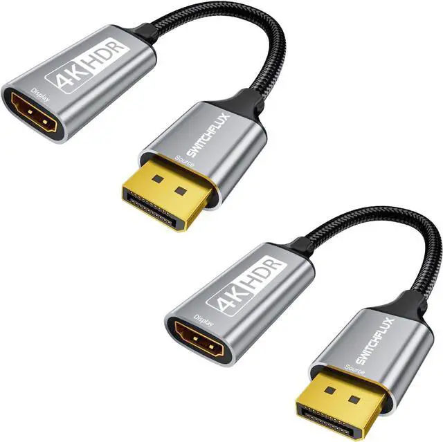 4K@60Hz Ultra HDSWITCHFLUX DisplayPort 1.2 to HDMI 2.0 Adapter Perfectly supports 3840×2160@60Hz 2560*1440@60Hz/120Hz 1920*1080@60Hz/120Hz ultra-high resolution and refresh rate with the exclusive Dynamic HDR and 10-bit color depth processing technology presenting detailed picture quality and wider color gamutUnidirectional & Plug & PlayDP to HDMI adapter simple design no need to install driver/external power supply plug in immediately to establish a stable connection support hot-swappable technology device switching without rebooting unidirectional adapter only support DP source to HDMI displayRugged and durable24K gold-plated interface antioxidant performance is 8 times higher than ordinary nickel-plated no rust in humid environment. Aluminum alloy one-piece shell better heat dissipation.