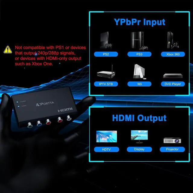 Note: NO scale functionVIDEO & AUDIO FORMATSupport video color format: 24bit/deep color 30bit 36bit and support uncompressed 2 Channel LPCM Support 165MHz/ 1.65G bps per channel bandwidth ensure no distortion of audio or video signal no delay in signal transmission. WIDE COMPATIBILITYThis converter is compatible with Component and HDMI devices. Compatible with PS2 PS3 PSP Xbox Nintendo Switch DVD etc.