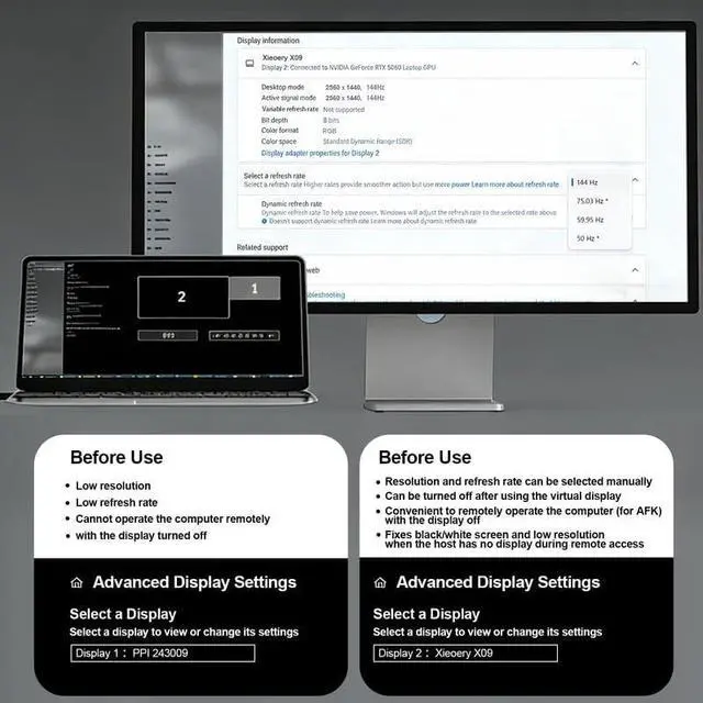 ?? Optimized 2K & Full HD Display Emulation Designed with a dedicated EDID profile prioritizing 1920×1080@60Hz and supporting resolutions up to 2K. Ensures clean stable display output for remote desktops servers mini PCs GPU clusters and virtual machines.?? HDR Color & Brightness Metadata Support Includes HDR-related EDID information such as color space brightness range and EOTF allowing systems to maintain accurate color reproduction even without a physical monitor. Enhances remote streaming rendering and media workflows.?? High Refresh Rate Up to 144Hz Supports a wide selection of refresh rates including 60Hz 75Hz 120Hz and 144Hz.