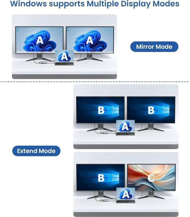Package Contents and Support: Includes one 2 HDMI adapter for dual monitors with a docking station dual monitor HDMI functionality backed by a 24-month return or replacement policy and 24/7 customer service. Requires standard HDMI cables; compatible with Windows for AAA ABB ABA ABC modes macOS for AAA/ABB modes only.