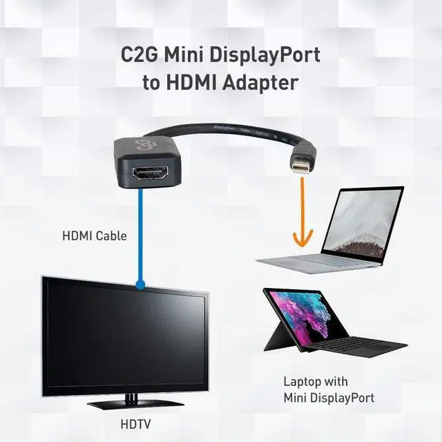 Stream shows videos or presentations by connecting a Mini DisplayPort/Thunderbolt 2 device output to an HDMI display monitor or TV input using an HDMI cable (sold separately) to the adapterEnjoy a crisp clear picture with resolutions up to 1080pEasy to use plug and play with no need to download drivers. Compatible with both Mini DisplayPort and Thunderbolt 2 devices Legion Y540 15 legion Y540 17 G7 15 G7 17 G5 GTX1050Ti Omen 15t Surface Pro 6 (2018) Surface Laptop 2 (2017) Surface Studio (2016) MacBook Air (13-inch 2015 - 2017) MacBook Air (11-inch 2015) MacBook Pro (Retina 13-inch 2012 - 2015) MacBook Pro (Retina 15-inch 2012 - 2015)