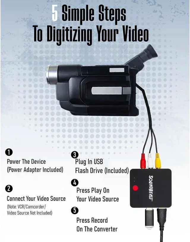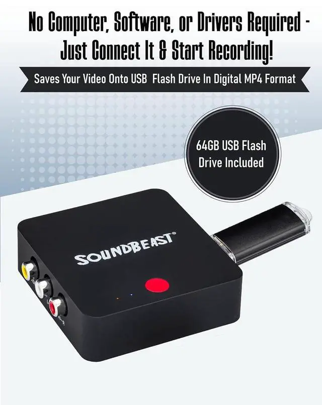 Resolution: 720P 1280x720 NTSC @ 60 FPS 720P 1280x720 PAL @ 50 FPS 15 GB per hour)No Computer or Software Required! Just Hook It Up & Start Recording - Records Videos Directly Onto USB Flash Drive (64 GB USB Flash Drive Included; Holds Approximately 4 Hours of Video at a Time)Saves Digitized Footage in Modern Universal MP4 Video Format - Playable on PC Mac TV Smartphones Tablets and MoreIncludes 1-Year Warranty & Tech Support from SoundBeast a USA-Based Small Business