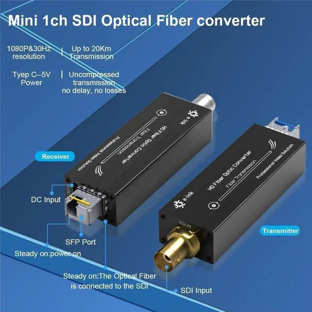 Small size: The size of the HD SDI optical terminal is only 3* 1.1 * 0.7 inches which is very small and easy to carry. Aluminum alloy material lightweight anti-fall.