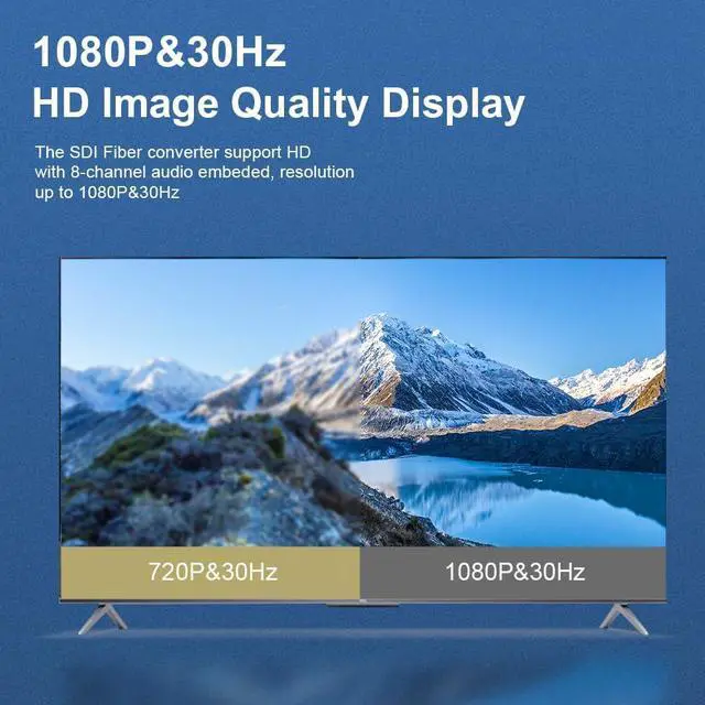 HD-SDI Video: The SDI Fiber converter support HD-SDI with 8-channel audio embeded resolution up to 1080P&30HZ Automatic reclocking 270Mbit/s - 1.48G bit/s.