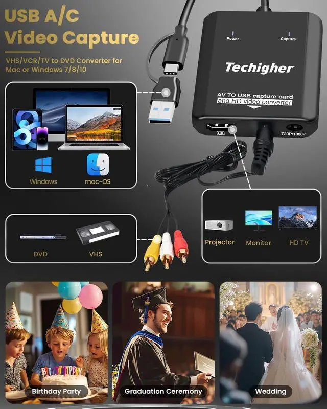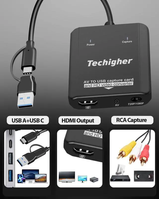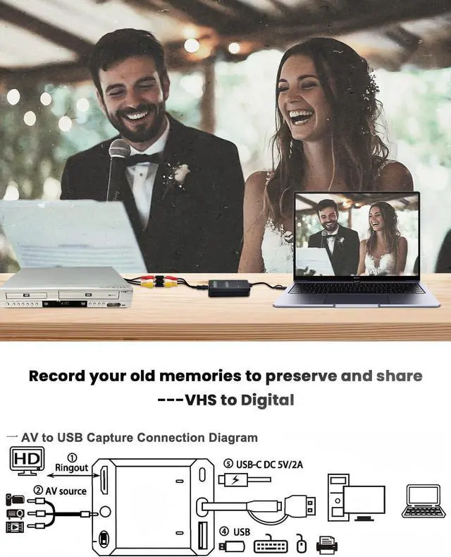 • VHS to Digital Converter & RCA to HDMI Adapter USB Video Capture Card for VCR/DVD/AV/PS2/Wii av to hdmi Converter to Display Output wii hdmi Adapter Save/Convert OldVideo (Optimized 2025)