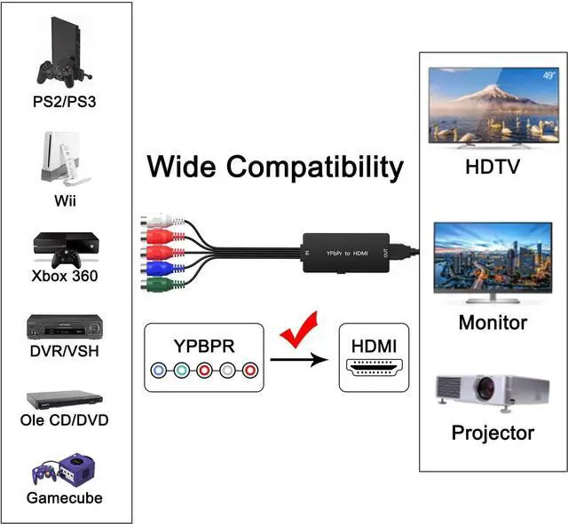 (Note: This is a YPbPr to HDMI converter does not support reverse conversion)YPbPr to HDMI