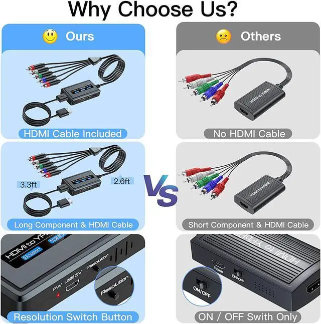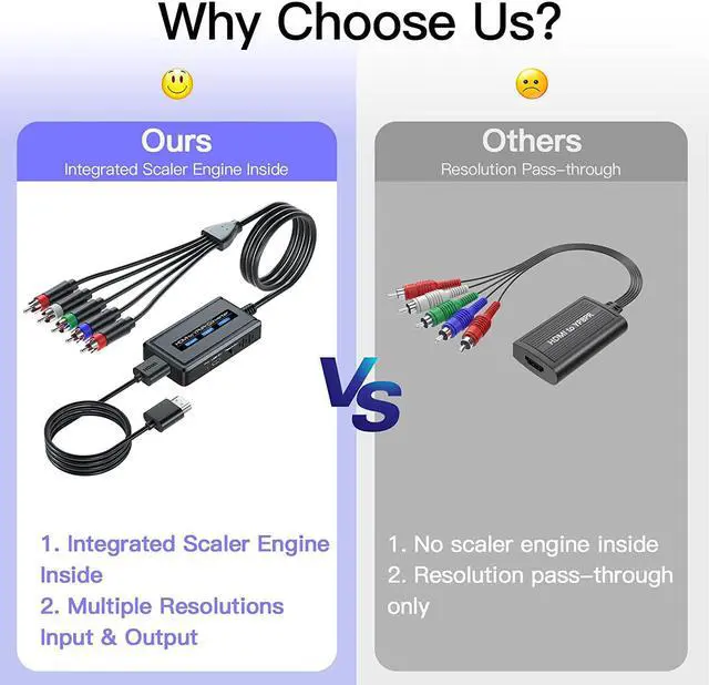 HDMI & Component Cables IncludedThis HDMI to Component scaler converter comes with HDMI & Component cables no need to purchase any extra cables.
