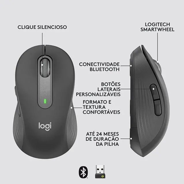 Upgrade to smarter scrolling and more productivity with a mouse comfort-fit for your hand size and preference. You'll work faster than ever before thanks to SmartWheel scrolling, silent clicks, and a contoured comfort design. Smartwheel Scrolling provides line-by-line precision for documents - and super fast scrolling for long web pages. Choose the right design for you - whether you have smaller or larger hands - and work long hours in comfort thanks to the computer and laptop mouse's contoured shape and soft-to-the-touch thumb area. Connect instantly via Bluetooth or Logi Bolt USB receiver. Customize the side buttons for your favorite shortcuts with Logitech Options+. Work in peace and quiet thanks to 90 percent less click noise and Logitech SilentTouch technology. Plus, work for up to 2 years on the included AA battery so you never have to worry about recharging your mouse.