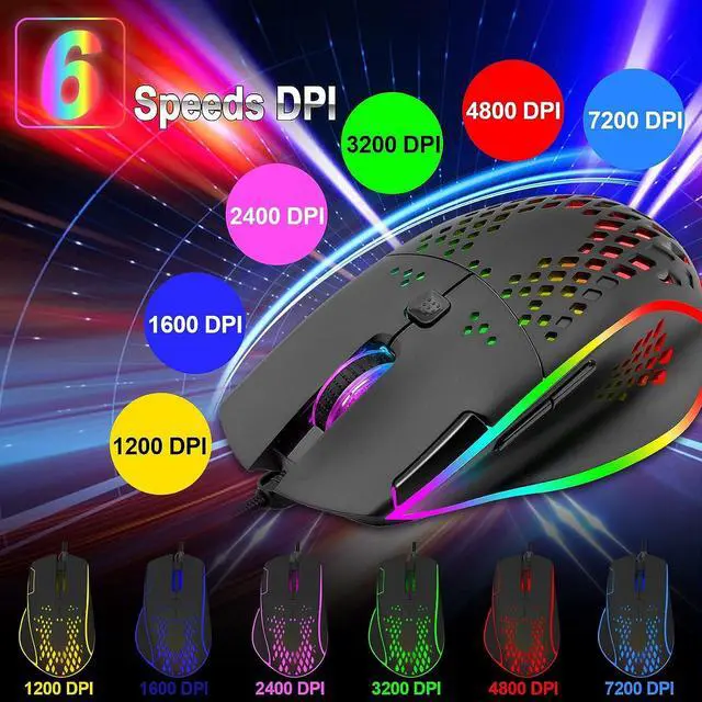 ^^6 Adjustable DPI: There are six speeds of DPI 1200/1600/2400/3200/4800/7200 to choose from, which can be switched with one click. The upgraded, more precise DPI speed adjustment allows for smoother operation. Whether you use it for everyday web browsing, office work or gaming, it's got it all.