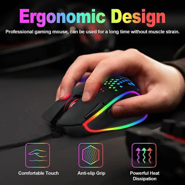 Stylish Honeycomb Mouse: The mouse has three choices of black, pink and green, and uses a honeycomb design to make the light effect more brilliant while effectively enhancing heat dissipation as well as reducing the weight of the body, it is a good choice for both gaming and office.
