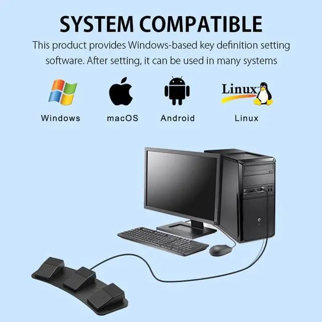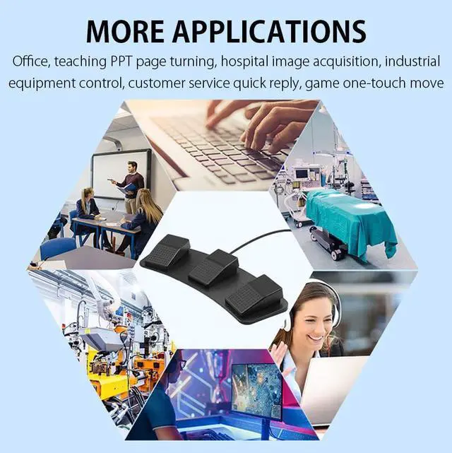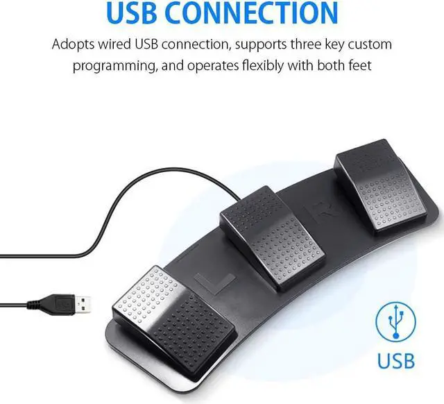 • USB TRIPLE FOOT SWITCH PEDAL: Adopts wired USB connection, supports three key custom programming, and operates flexibly with both feet.