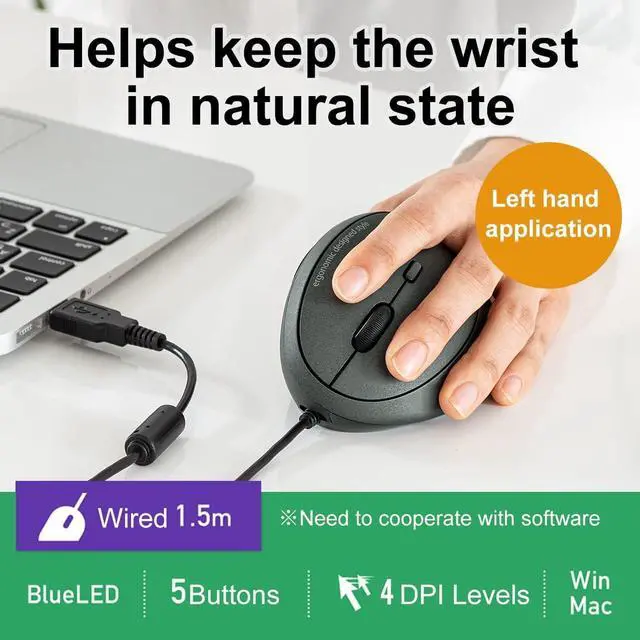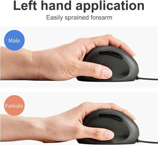ERGONOMIC DESIGN: Designed with a vertical orientation and a contoured shape that provides a uniquely comfortable user experience. Designed specifically for left-handers, this wrist-friendly contour support, you will hold your hand in a healthy "handshake position, " which is the neutral position of your forearm. Places your hand in a natural "handshake" wrist & arm position for smoother movement and less muscle tension. Cute Rounded shape just fits in the palm of your hand.