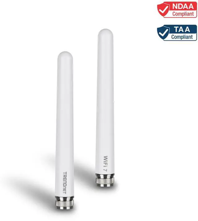 TRENDnet's 3/6/7 dBi Outdoor Tri-Band Omni Antenna Kit, model TEW-AO57, comes with a pair of high-performance outdoor