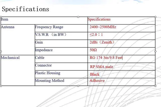 Gain: 2dBi (Zenith)