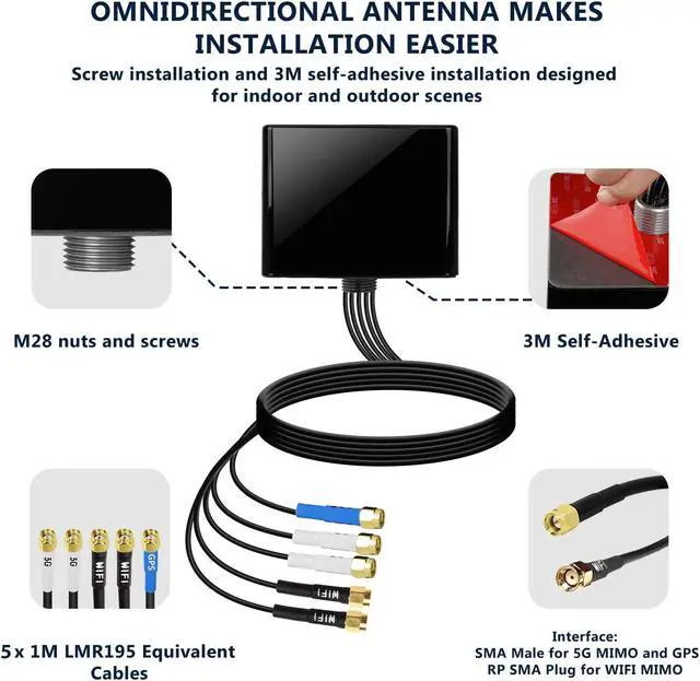 • Multiple applications: High quality Cellular MIMO GNSS Antenna for 5G 4G 3G LTE, GNSS WIFI7 Antenna for Wifi7/WiFi6E/Bluetooth/Zigbee antenna. Suitable for GSM/3G/4G/5G LTE Wifi7/WiFi6E/Bluetooth/Zigbee GNSS system, for industrial, commercial and IOT applications.