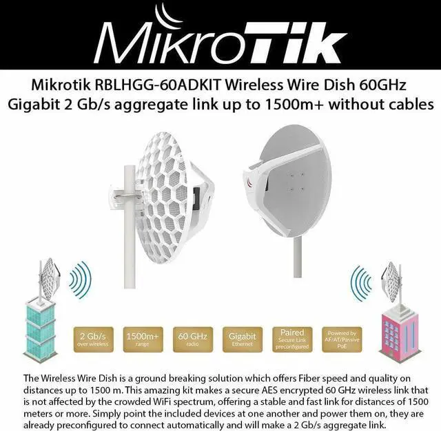 MikroTik Wireless Wire Dish 2 Gb/s aggregate link up to 1500m RBLHGG-60ad kit