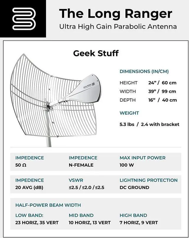 The Long Ranger Cellular and WiFi Antenna High Gain Parabolic Directional Antenna for Cellular and WiFi